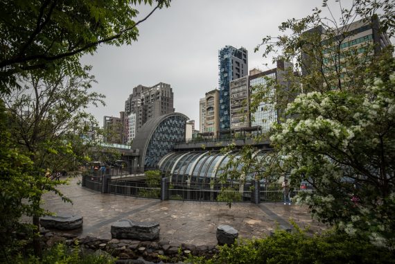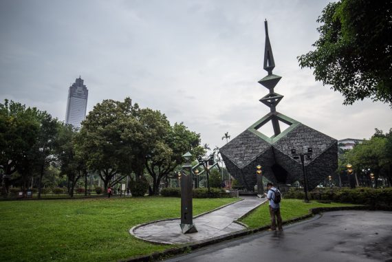 Je me rends ensuite dans le quartier de Da’an. Le grand parc forestier qui en occupe le coeur est impressionnant, très vaste et peuplé d’une foule incroyable de chasseurs de Pokémons ! Pokémon Go! est encore dans tous les coeurs ici et clairement, ça chasse fort malgré la pluie… J’aurais bien voulu voir le lieu sous le soleil, même si cette nuée de parapluies avait quelque chose de romantique, malgré les nés vissés aux smartphones.