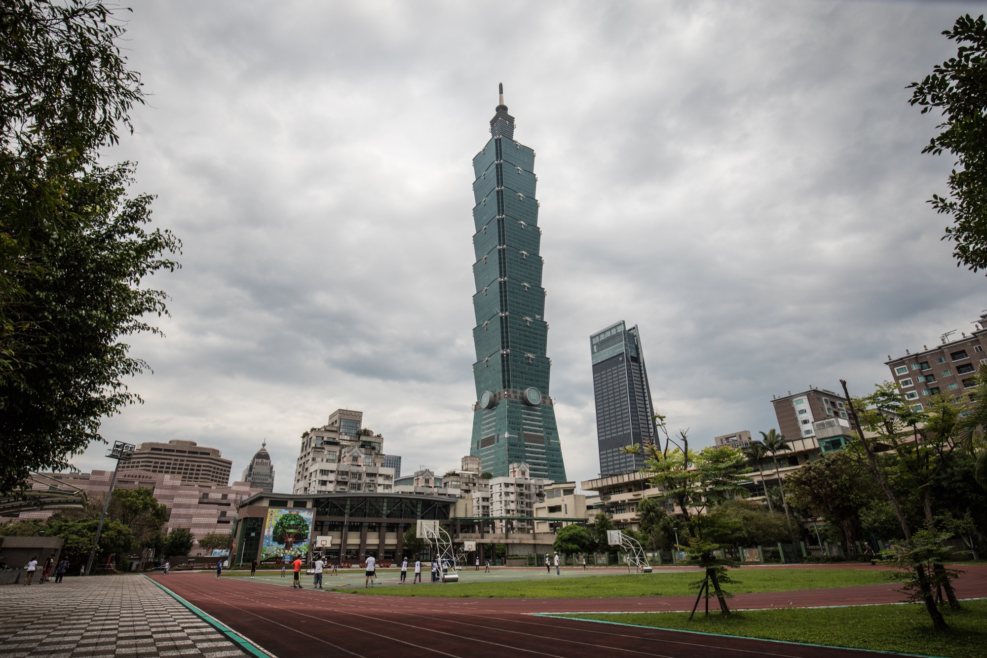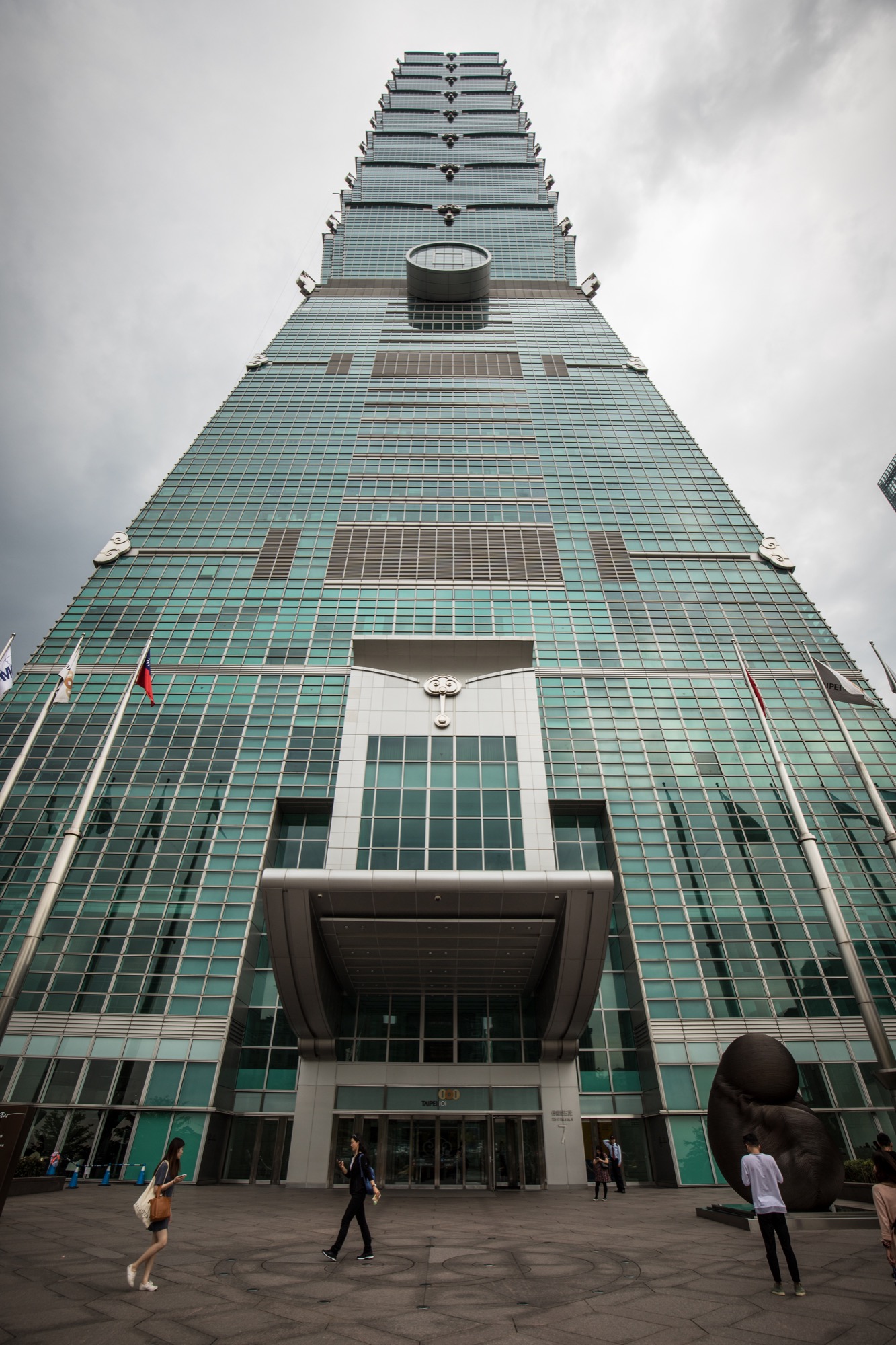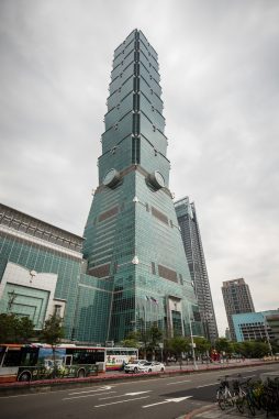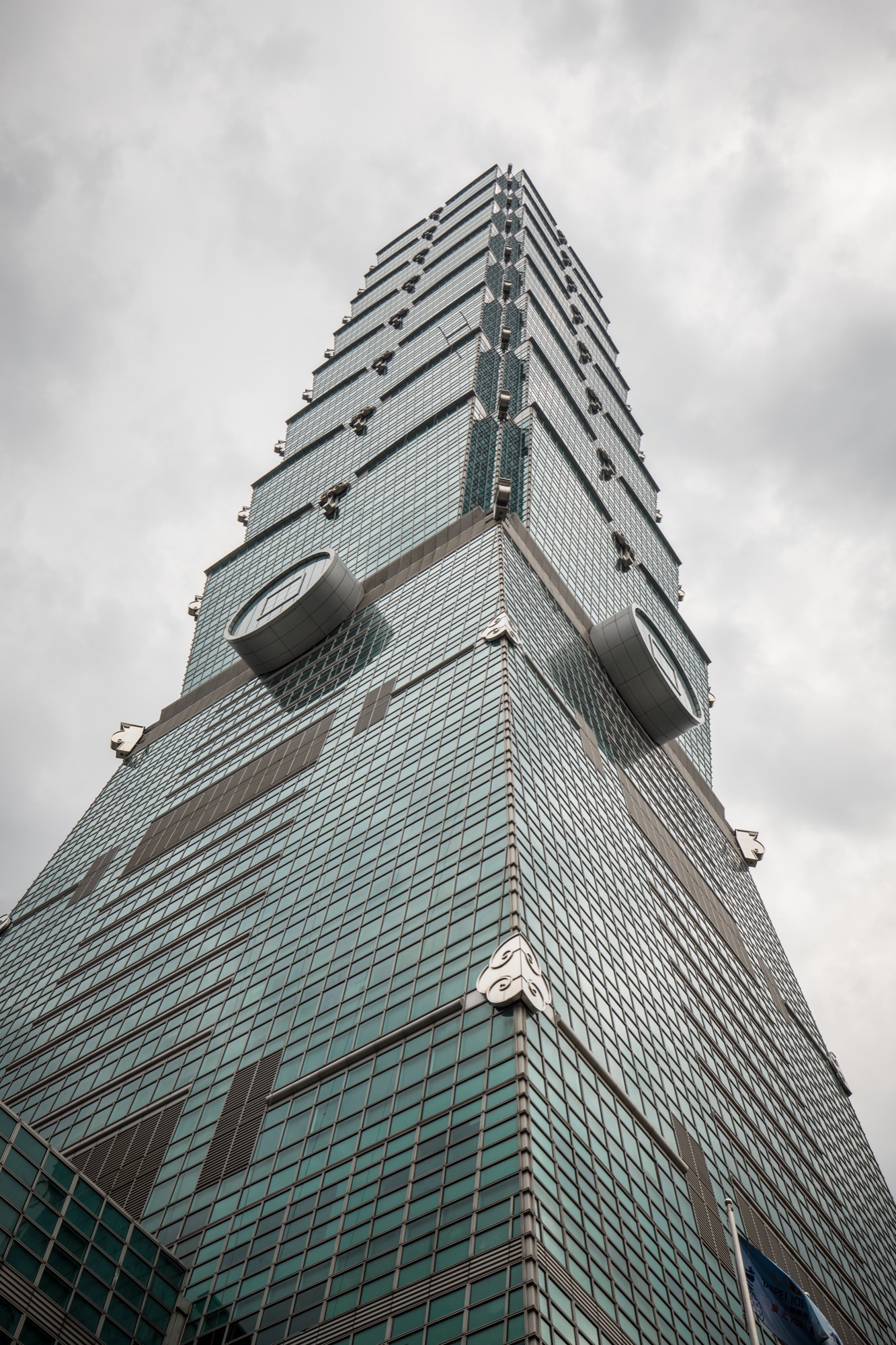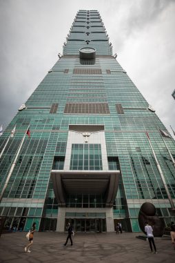 Taipei 101. Le fleuron de Taipei, l’un de ses plus grands symboles, cette unique grande tour qui dépasse toutes les autres et dominer la capitale. Le soleil a commencé à se voiler mais la tour n’a pas encore la tête dans les nuages, du haut de ses 508 mètres.