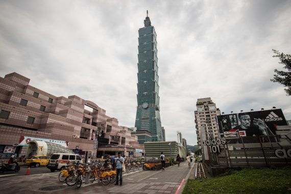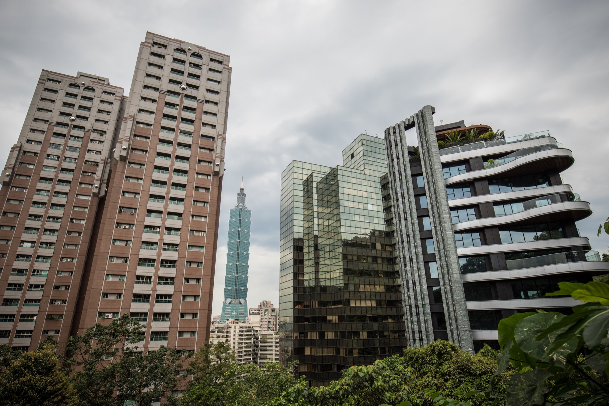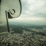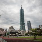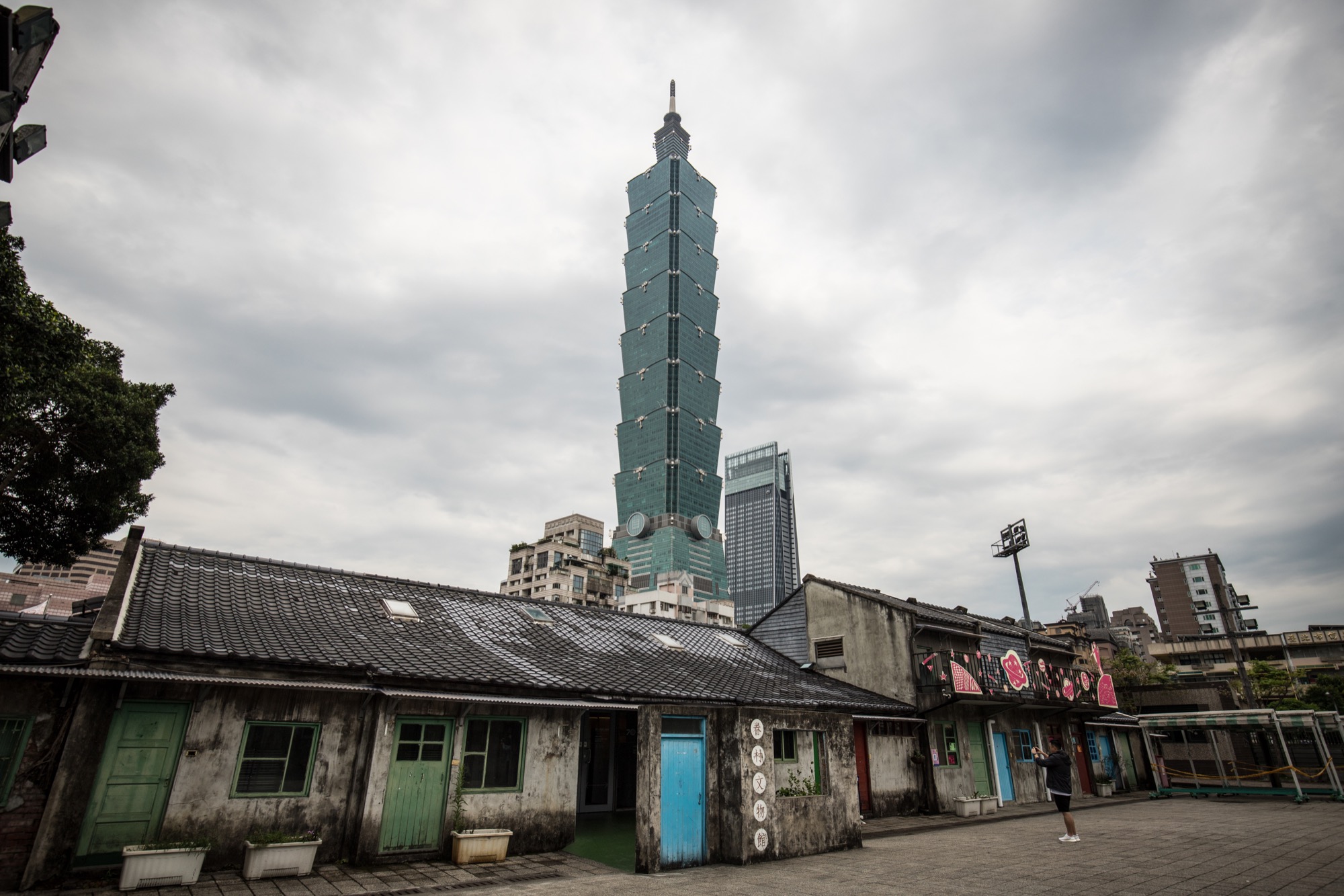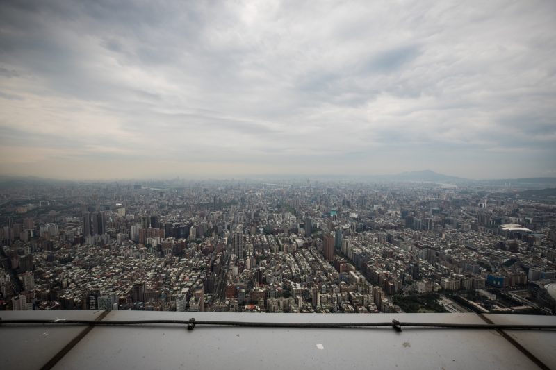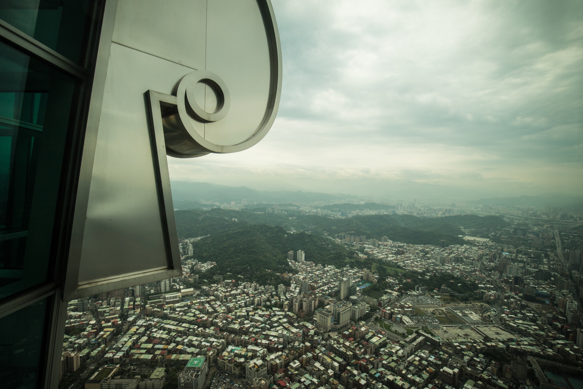 Taipei 101. Le fleuron de Taipei, l’un de ses plus grands symboles, cette unique grande tour qui dépasse toutes les autres et dominer la capitale. Le soleil a commencé à se voiler mais la tour n’a pas encore la tête dans les nuages, du haut de ses 508 mètres.