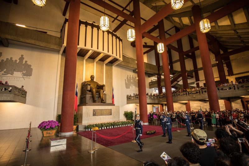 Le but de ma pérégrination est en tout cas un autre monument majeur de Taipei : le mémorial Tchang Kaï-chek. Murs blanc et toit bleu trônant au centre d’une esplanade gigantesque, le bâtiment en impose, tout comme celui qu’il honore, le leader nationaliste et autoritaire responsable de la Terreur Blanche mais aussi de la naissance de la Taïwan moderne.