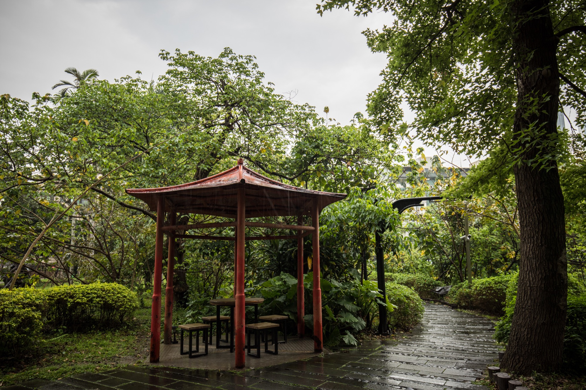 Je file ensuite encore un peu plus au Nord du quartier de Xinyi, pour m’abriter du déluge qui crève soudain les nuages. Le Songshan Culture & Creative Park est le lieu idéal pour une petite pause café / douceur, pour flâner de boutique en galerie, au sein de cette ancienne fabrique de tabac et village industriel reconvertie en lieu culturel.