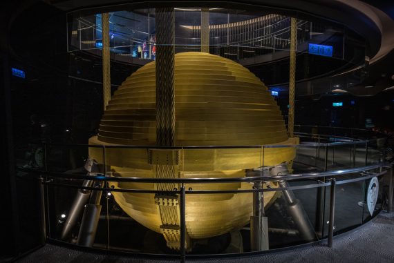 Avant de redescendre, il ne faut surtout pas manquer l’amortisseur harmonique. Cette grosse boule de 6 m de diamètre, pesant plus de 600 tonnes, sert à équilibrer la tour lors de vents forts ou de séismes… Impressionnant par la taille mais aussi pour la rareté qui consiste à pouvoir s’en approcher librement.