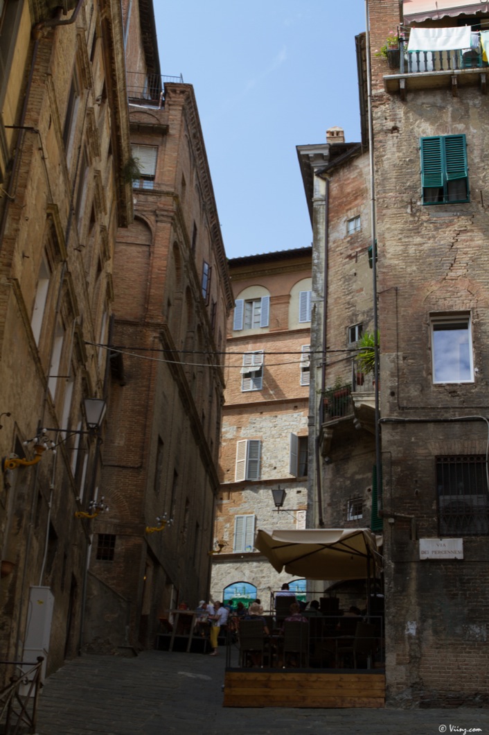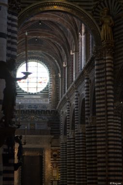 Dernière ascension pour un dernier regard sur la ville, depuis l’arche dépendant de la cathédrale et abritant le musée dell’Opera… Décidément, il m’est difficile de partir de cette ville et une seule journée m’aura à la fois rassasié et frustré de ne pas prolonger la magie de la visite. Si d’aventure je retourne en Toscane, il me faudra “vivre” cette ville différemment, en laissant passer le temps et en savourant la douceur des ruelles ainsi que la chaleur des places. Sublime Siena…