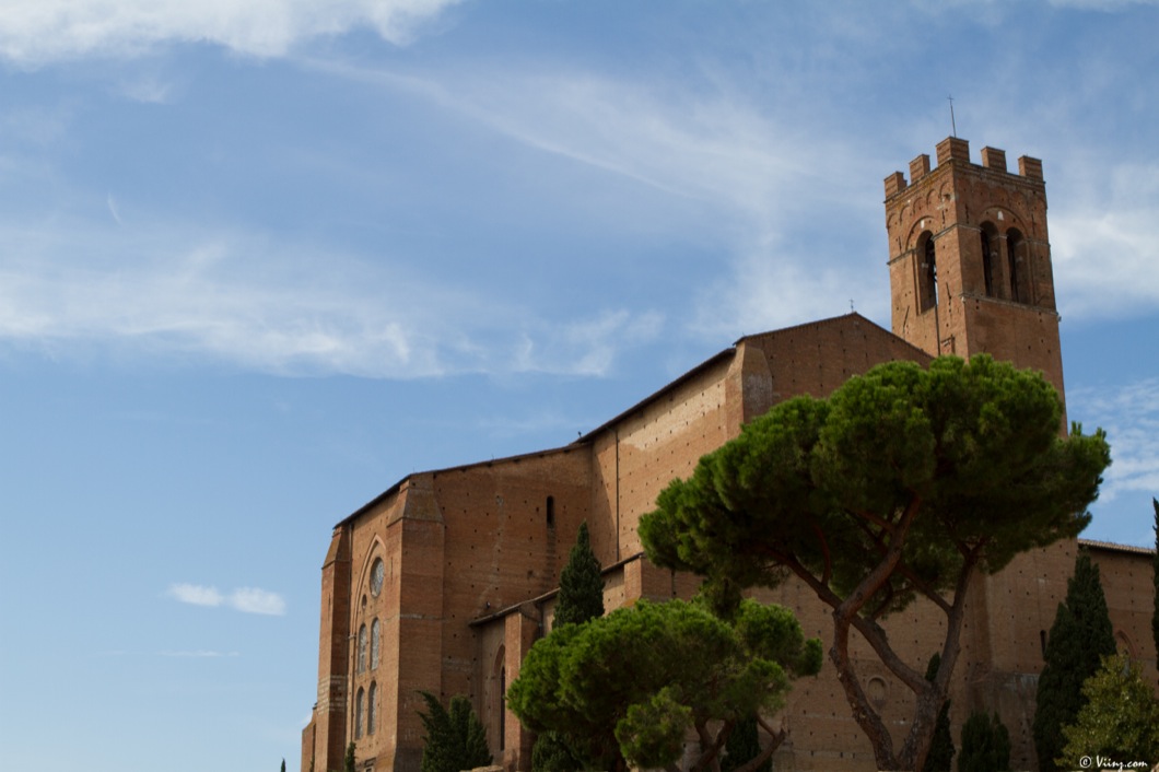 Sienne, au bout de la SR222, des paysages sublimes et une arrivée sur la ville du côté du grand stade, voiture mise au parking du côté de l’ancienne forteresse. C’est parti pour une journée de marche dans les ruelles de cette ville dont je rêve depuis des années. La Basilica Cateriniana di San Domenico est le premier édifice aperçu sous un soleil de plomb, grandeur et majesté bordée de cyprès hors d’âge. Cette bâtisse observe Sienne de sa hauteur, première vision éloignée avant de plonger en son cœur. A couper le souffle.