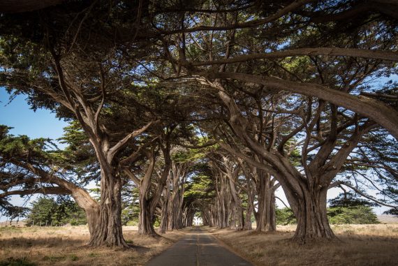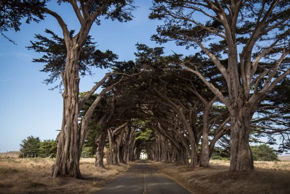 Il n’en est rien, en fait. C’est juste qu’on peut arriver jusqu’au parking du phare, mais que l’accès à celui-ci est coupé, en pleine réfaction. Légère frustration, on ne va pas se mentir ! Je profite néanmoins des superbes vues sur les falaises accessibles depuis le parking. Point Reyes est impressionnant à de nombreux titres, alors on se satisfait comme cela, en sus d’aller jeter un oeil à l’incroyable allée de cyprès format un tunnel végétal à mi-chemin de la péninsule.