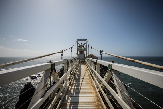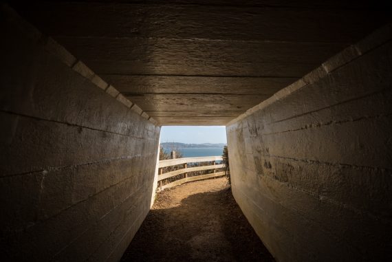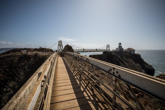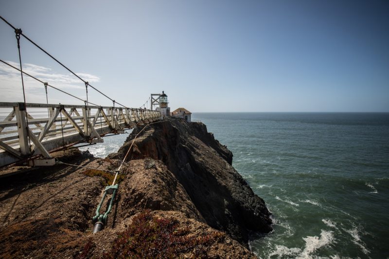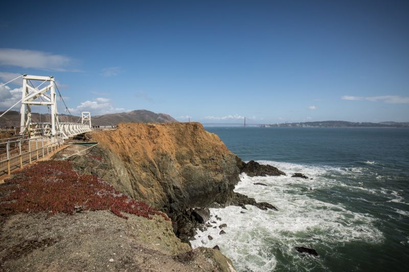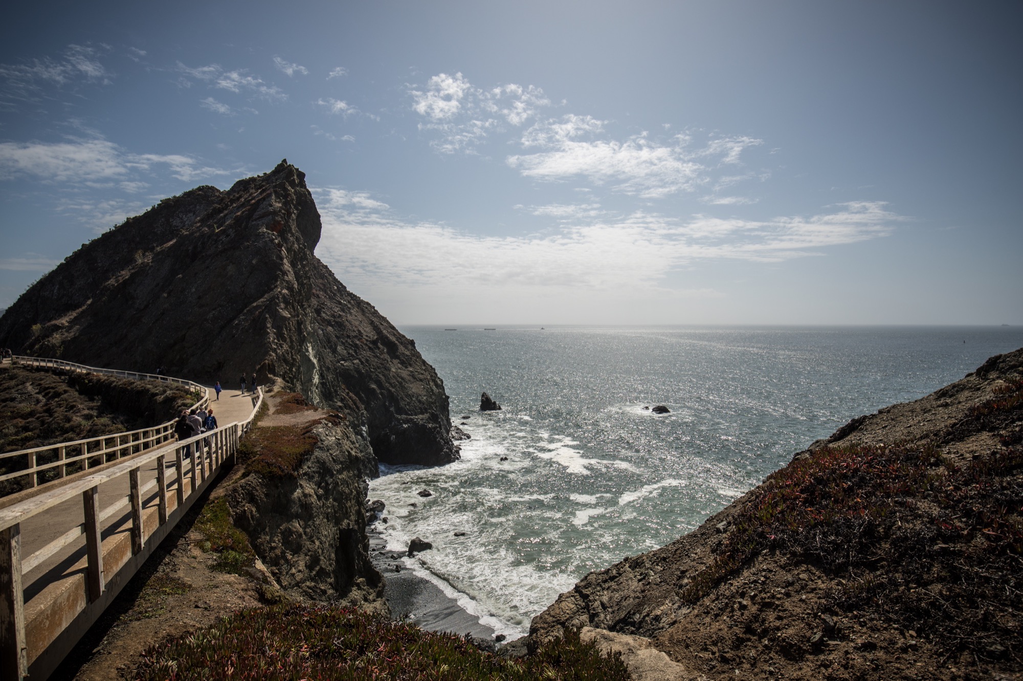 De nombreux sentiers permettent de se promener dans le coin et d’aller de fort en fort, de point de vue en point de vue. Je me gare pour ma part au parking juste avant le phare de Point Bonita. Ce petit phare garde la baie du haut de son rocher, au bout d’une passerelle surplombant les flots. Le sentier, creusé juste avant dans la roche, est impressionnant.
