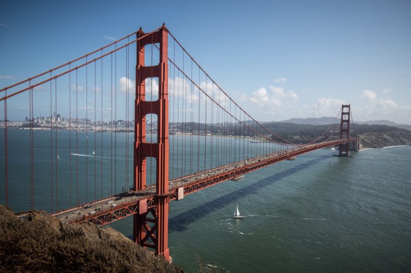 Le dernier point est le plus célèbre et s’y garer est loin d’être évident ! Un peu de patience et surtout, un peu d’intelligence en allant se garer un peu plus loin, il y a beaucoup de rotation, voilà l’auto garée. Les batteries Ridge et Spencer accueillent les visiteurs en grand nombre, avec une vue de toute beauté sur le Golden Gate. Pas un nuage, pas de fog, juste le soleil sur la baie et le CBD de San Francisco, derrière.