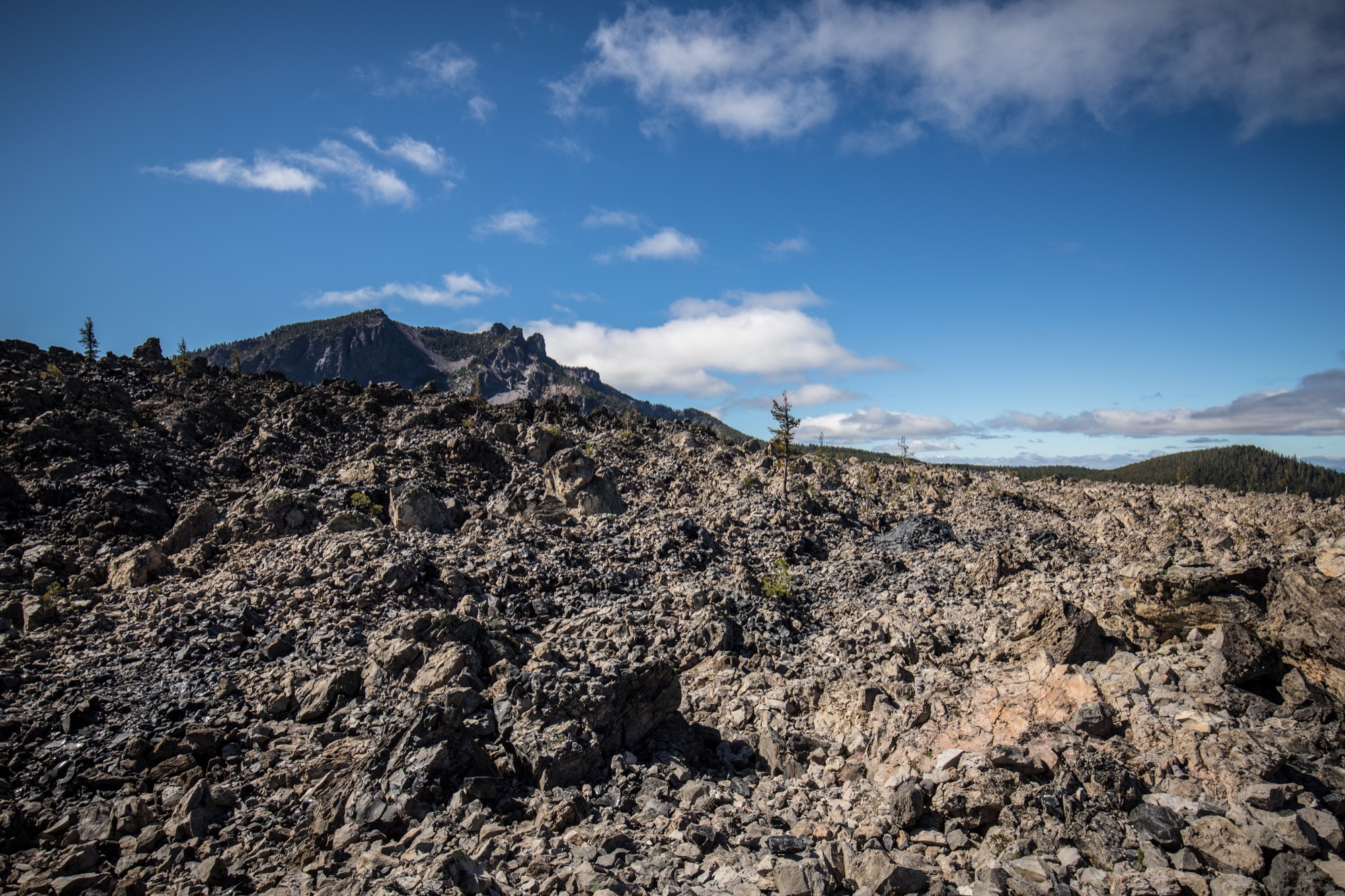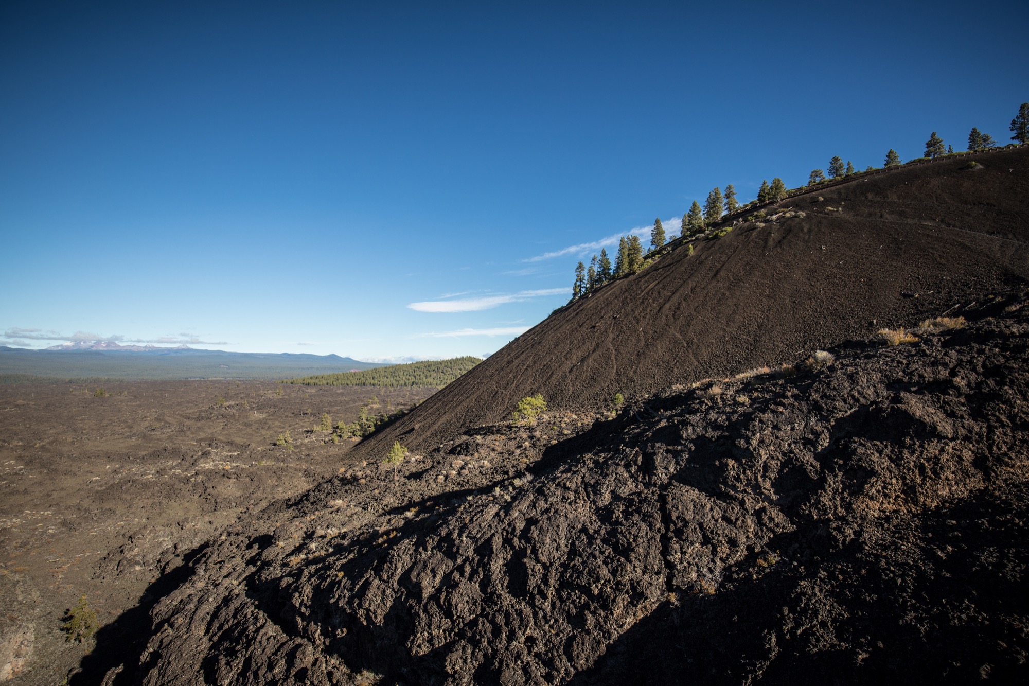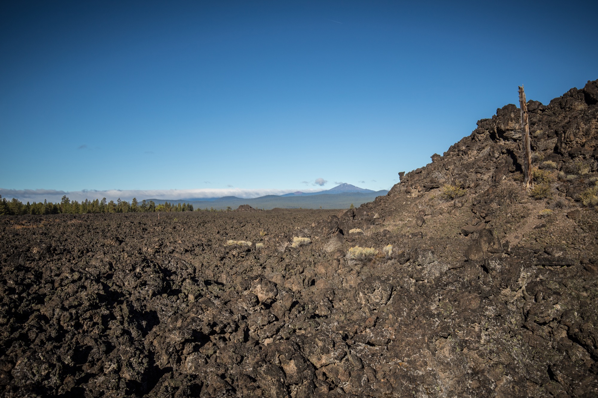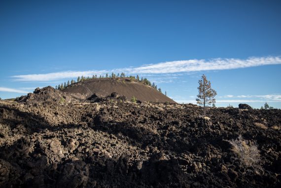 Pas besoin pour ce qui me concerne ! Pour commencer la journée au plus près de Sunriver, où je logeais, j’ai pris la direction du Lava Beds Visitor Center, à mi-chemin de Bend. Manque de bol, c’était fermé et je me suis “contenté” dans un premier temps d’une balade sur le récent champ de lave ceinturant le Lava Butte Cinder Done !