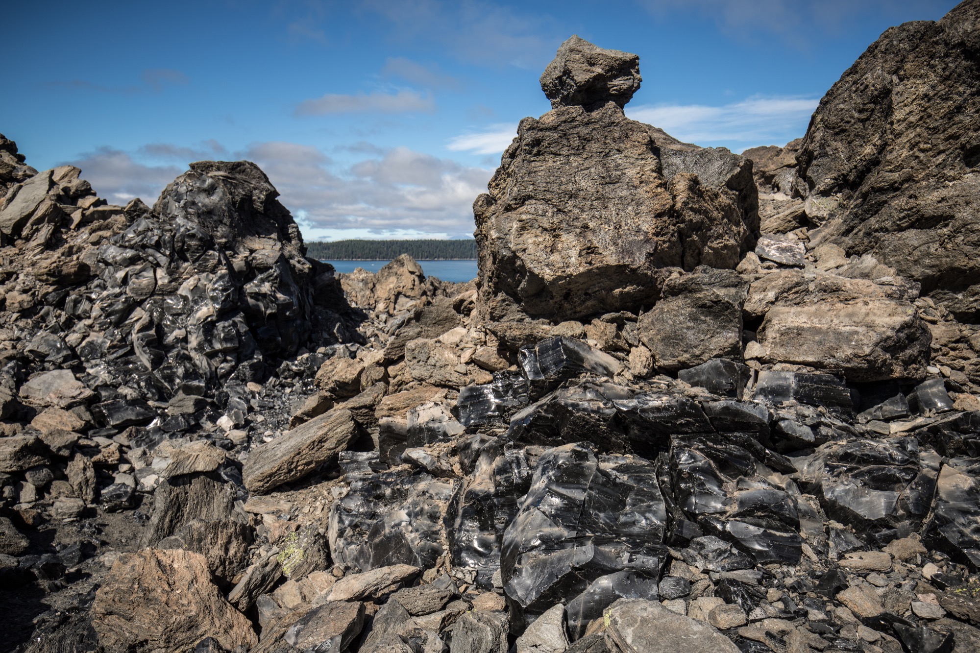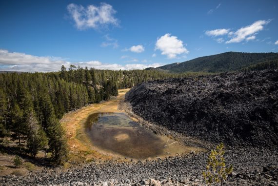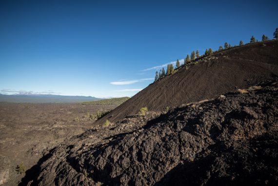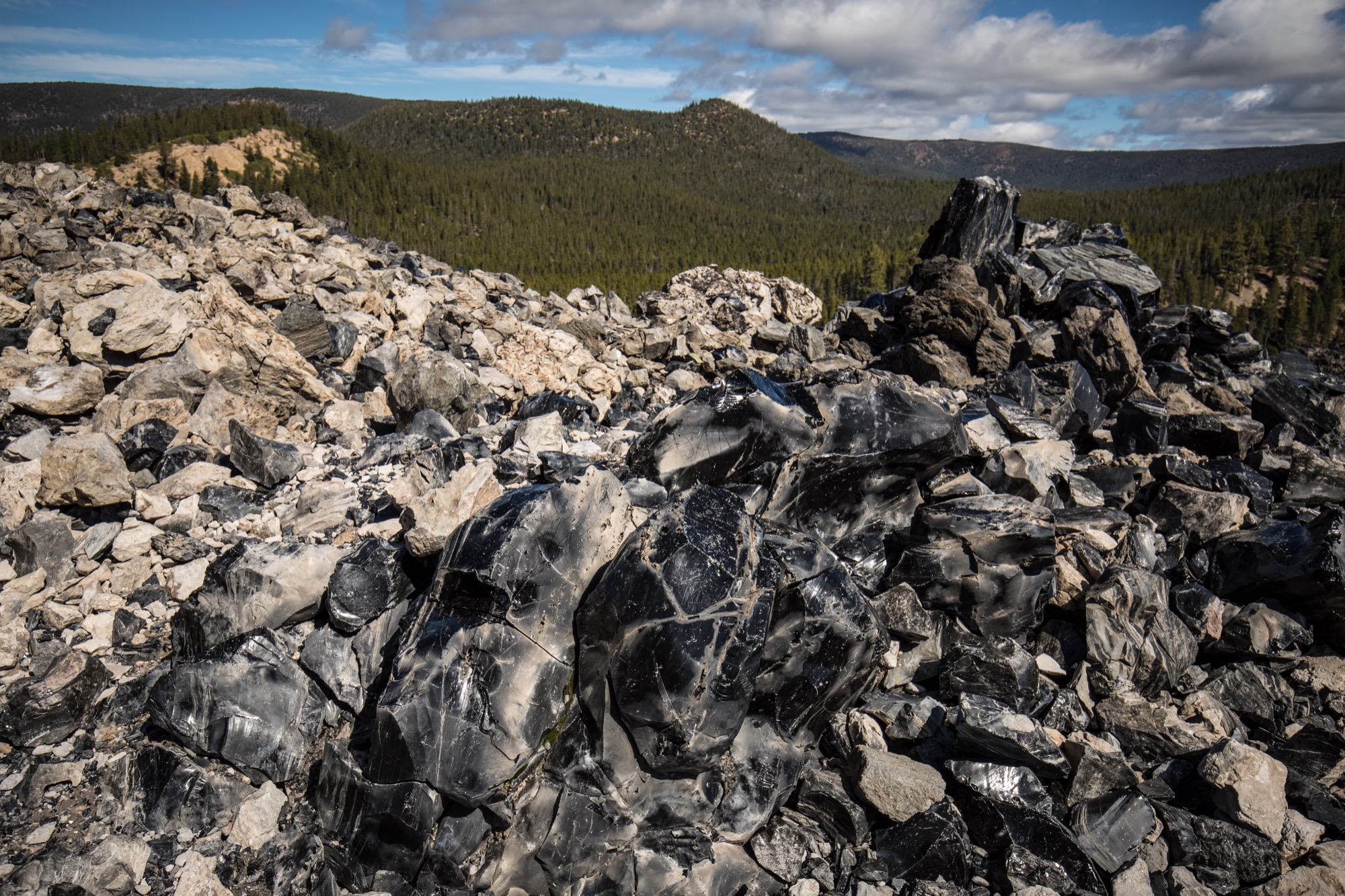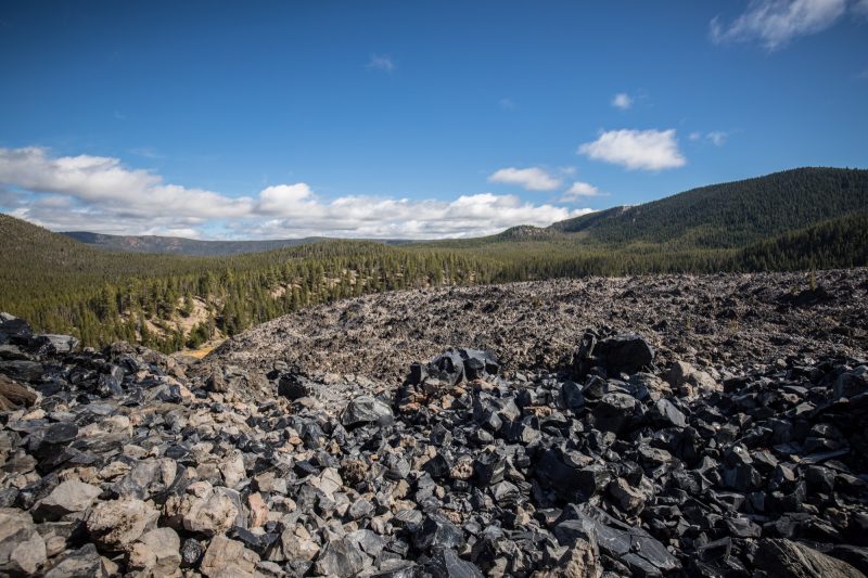 La découverte des lieux commence par une première escale pour randonner au milieu d’une singularité : le Big Obsidian Flow ! L’obsidienne abonde en effet dans cette grande coulée de lave qui a surgi des flancs de l’immense caldera volcanique du cratère de Newberry. On s’y balade en prenant garde à ne pas se couper en laissant traîner ses mains ici ou là, tout en sachant qu’il ne faut pas repartir avec un échantillon. Je vous vois, les collectionneurs !