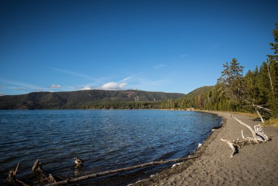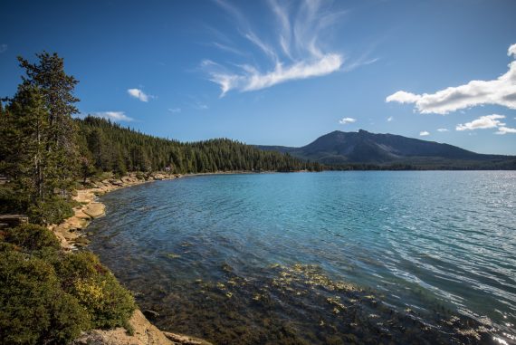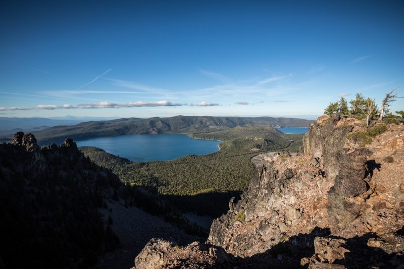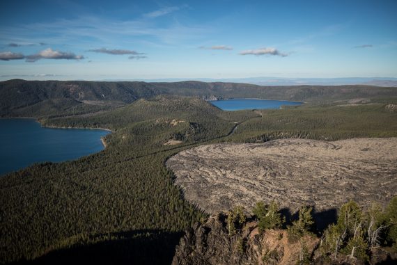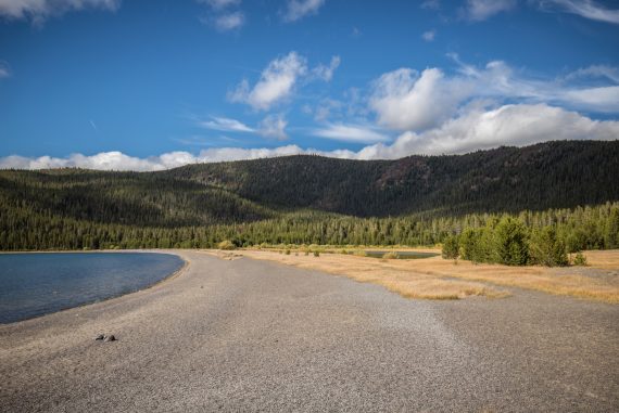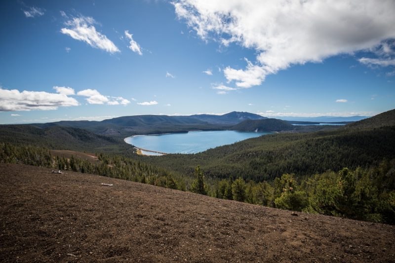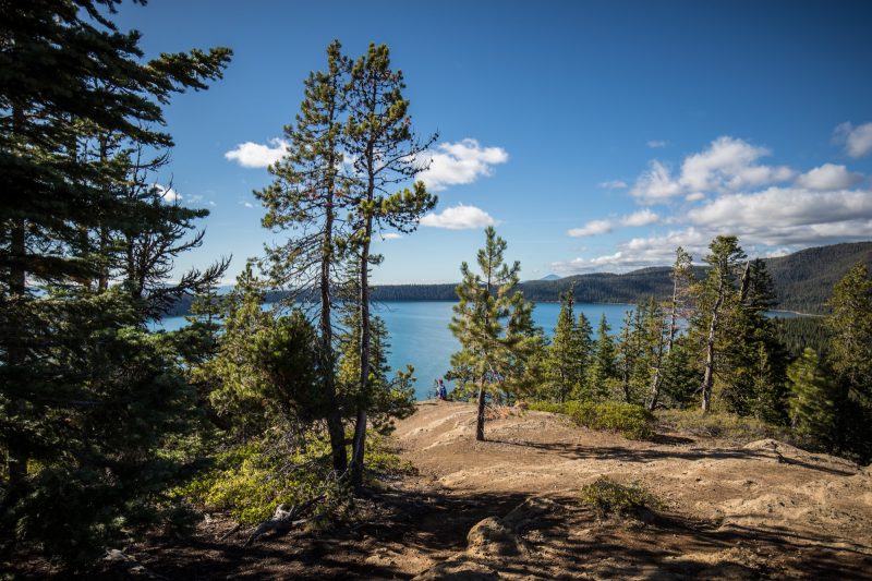 Tout au bout de la zone de Newberry, sur la rive est du second cratère et lac (l’East Lake…), on trouve un camping qui sert aussi de point de départ de randonnée. Celle-ci est agréable, en forêt pendant la majeure partie du parcours. Est-elle intéressante ? Pas spécialement, mais cela fait une bien belle balade qui donne toutefois sur un très beau point de vue sur les deux lacs et le Paulina Peak ; sans oublier les cratères centraux.