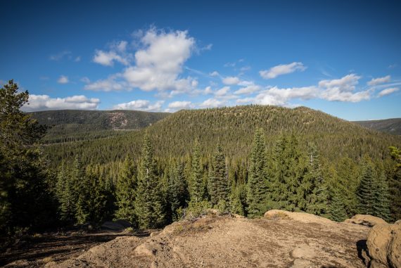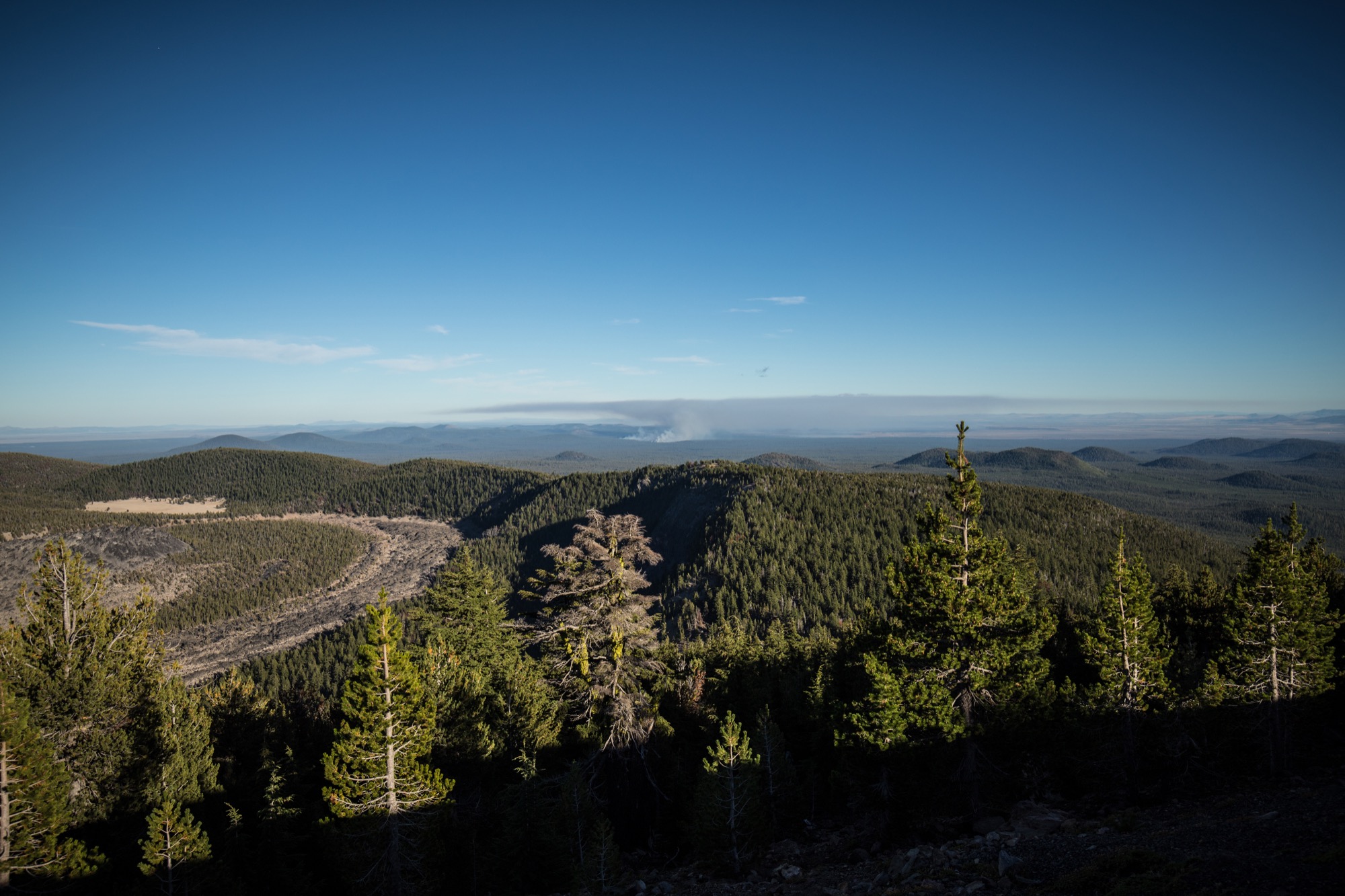 Retour au centre du cratère, pour une nouvelle courte balade ! Le Newberry Crater est le plus jeune des volcans, avec son petit voisin qui se perd dans les arbres. Autant les cratères sont bien distincts quand on les voit de loin, autant quant on est dessus on en perd la forme car les arbres sont ici légion. On ne va pas se plaindre, cela fait une fois encore une belle balade forestière agrémentée par les belles trouées sommitales.