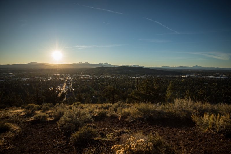 Il ne reste plus qu’à aller faire quelques courses du côté de Bend pour terminer la journée mais quitte à devoir remonter au nord de Sunriver, autant en profiter pour se faire une petite escale sur le drôle de cratère qui trône en plein milieu de la ville ! Le Pilot Butte, c’est son nom, est également doté d’une route menant à son sommet. C’est le coin de rencontre des jeunes et des amoureux du coin. Il faut dire qu’au couchant comme au levant, la vue sur les Cascades est particulièrement belle.